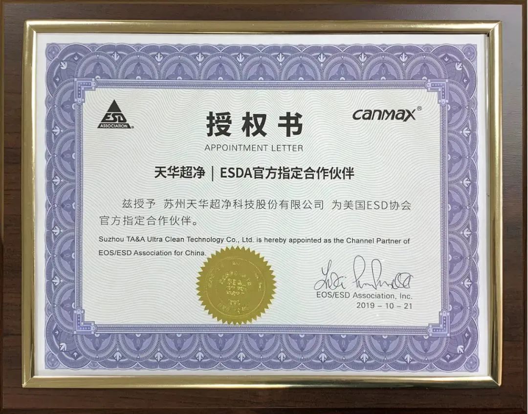 天华自2017年开始,携手ESDA开启战略合作,是ESDA官方指定合作伙伴,持续促进ESDA标准推广,积极努力推进ESD发展进程,为各行业的静电防护技术发展贡献自己的力量。