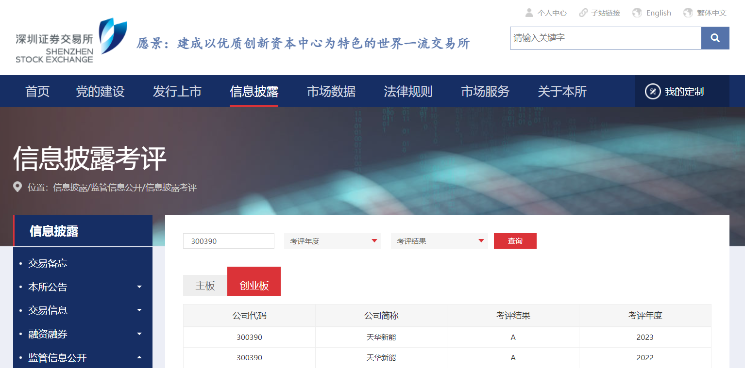近日,深圳证券交易所发布2023-2024年度信息披露工作评价结果,天华新能(300390)凭借在合规披露、投资者权益保护等方面的优异表现,连续两年荣获A级(优秀)评价。