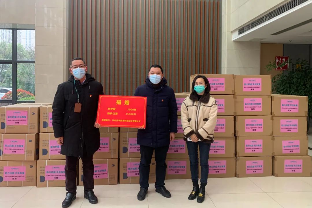 苏州天华超净科技股份有限公司勇担社会责任,积极向苏州三个城区的疫情防控一线捐赠防疫物资: