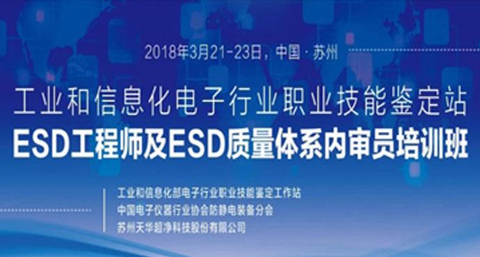 苏州天华超净科技股份有限公司受中国电子行业协会防静电装备分会委托,共建电子行业静电防护(ESD)华东地区培训基地。基地已于2017年10月在工业和信息化部相关领导与苏州园区领导的主持下挂牌成立。课程讲师由检验中心宋兢男主任亲自授课。各种仪器原理娓娓道来,学员们获益匪浅。宋兢男老师信息产业防静电产品质量监督检验中心主任。中国电子仪器行业防静电装备技术委员会副主任,防静电行业标准化工作委员会副主任委员,东南大
